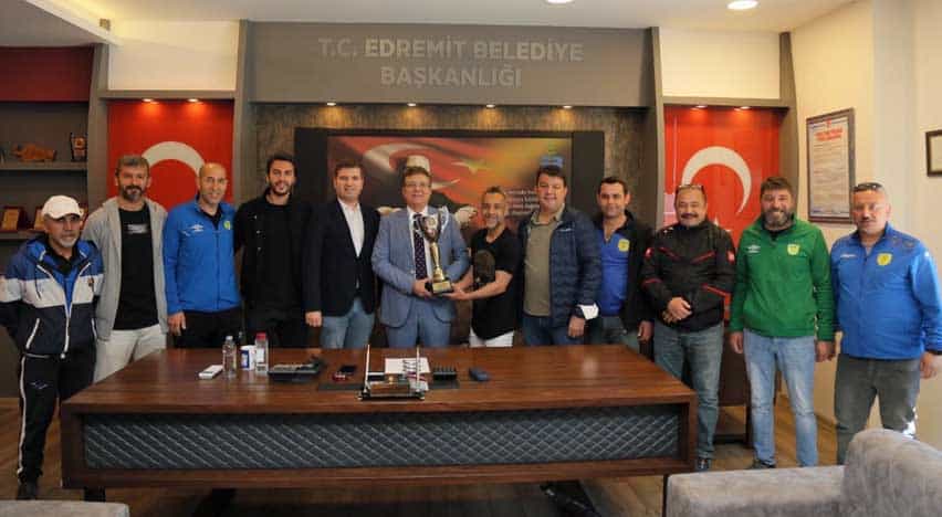 Balıkesir Süper Amatör Ligde şampiyon olarak Bölgesel Amatör Lig’e yükselen 1966 Edremitspor ve Genç Edrolular taraftar grubu, Edremit Belediye Başkanı Selman Hasan...