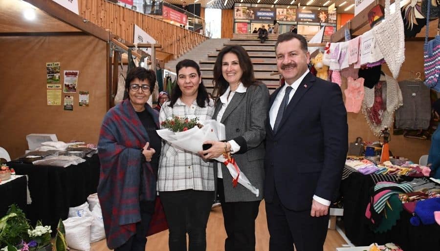 Balıkesir Büyükşehir Belediyesi tarafından düzenlenen ‘El Emeği Ürünler Fuarı’nı eşi Mehtap Yılmaz ile birlikte ziyaret eden Başkan Yücel Yılmaz, girişimci kadınların stantlarını...
